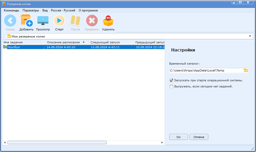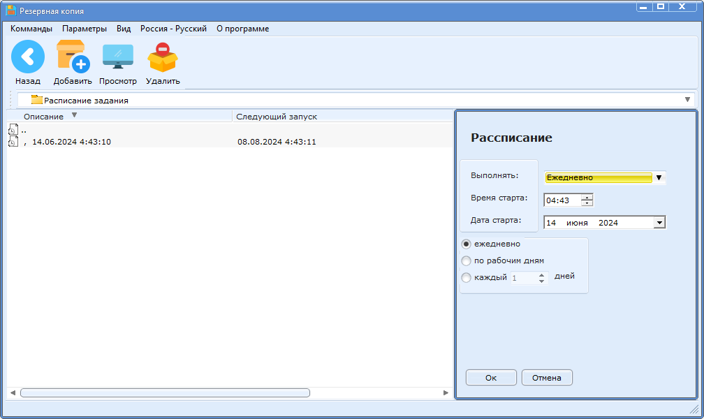 - создание резервных копий по расписанию;
